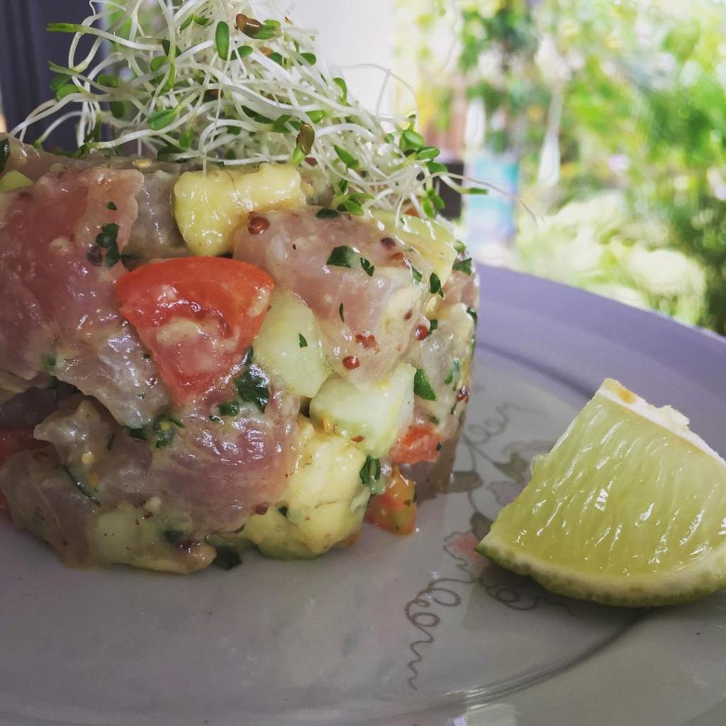- Un tartare de thon à l’avocat ou aux herbes. Profitez-en, vous ne verrez pas de tartare aussi copieux qu’à Tahiti.