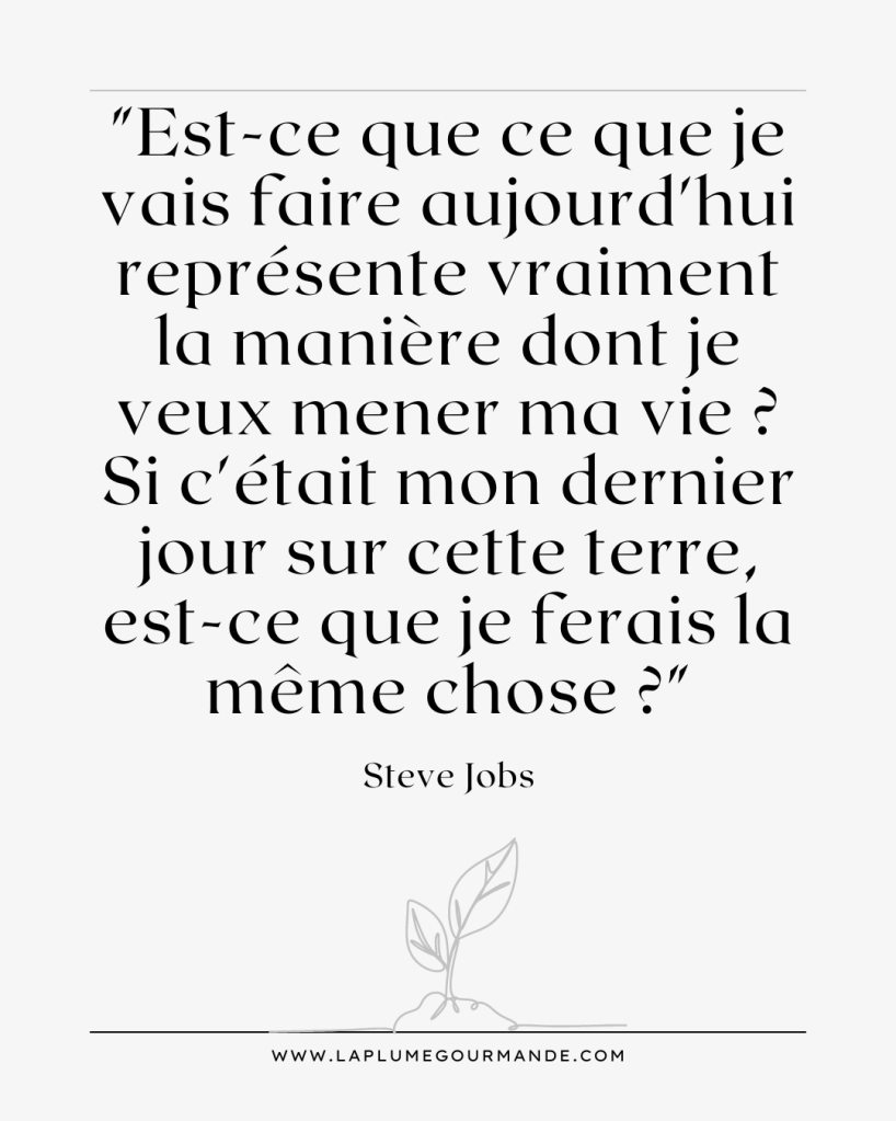 C’est ainsi que lors de son discours de remise des diplômes à l’université de Stanford, Steve Jobs a dit : « Tous les matins, je me regarde dans le miroir et je me demande :